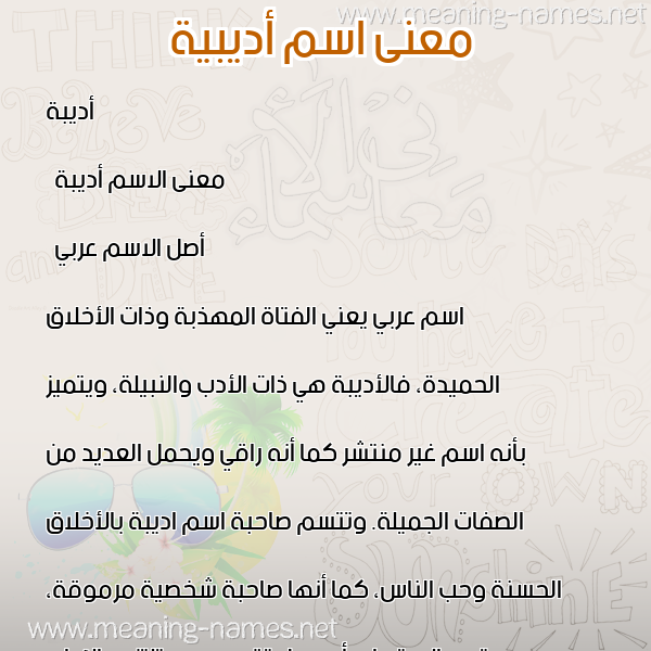 ما معنى اسمي أديبية ؟ H]dfdm ? what the meaning of Adeeba معاني كلمة أديبية قاموس الأسماء و المعاني و الكلمات .