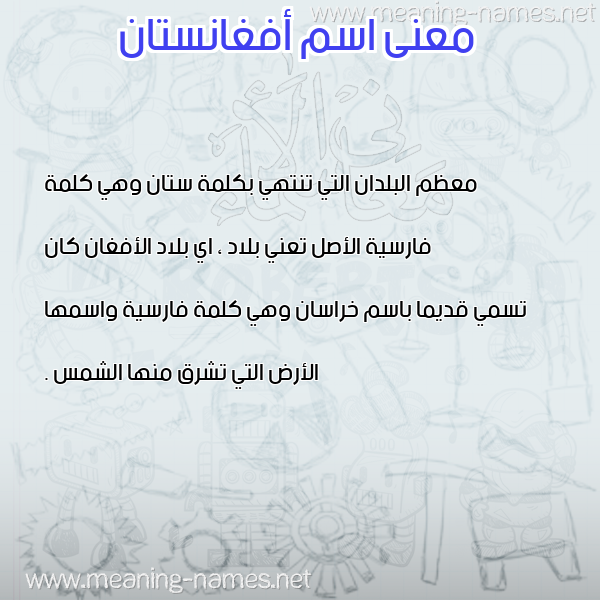 ما معنى اسمي أفغانستان ؟ Htyhksjhk ? what the meaning of AFGHANSTAN معاني كلمة أفغانستان قاموس الأسماء و المعاني و الكلمات .