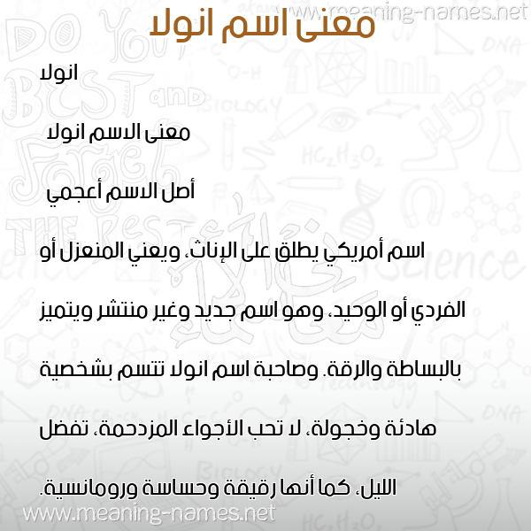 مشاهير يحملون اسم انولا و معنى اسم انولا في قاموس المعاني و الأسماء