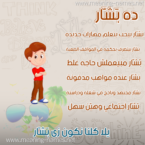 ما معنى اسمي بَشّار ؟ fQa~hv ? what the meaning of BASHAR معاني كلمة بَشّار قاموس الأسماء و المعاني و الكلمات .