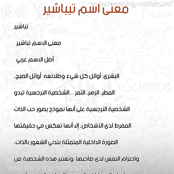 ما معنى اسمي تيباشير ؟ jdfhadv ? what the meaning of Tabashir معاني كلمة تيباشير قاموس الأسماء و المعاني و الكلمات .