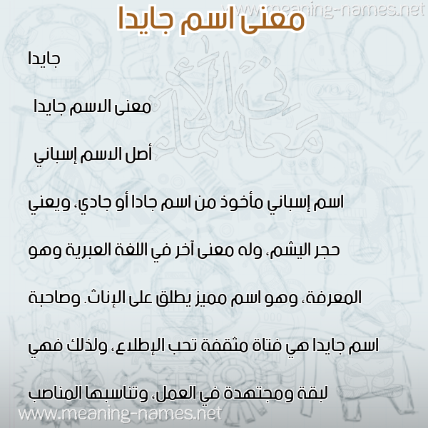 ما معنى اسمي جايدا ؟ [hd]h ? what the meaning of jaiidaa معاني كلمة جايدا قاموس الأسماء و المعاني و الكلمات .