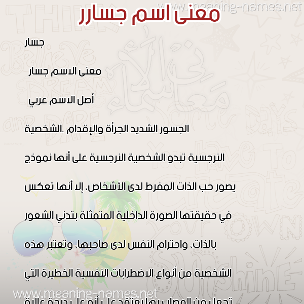 ما معنى اسمي جسارر ؟ [shvv ? what the meaning of Jassar معاني كلمة جسارر قاموس الأسماء و المعاني و الكلمات .