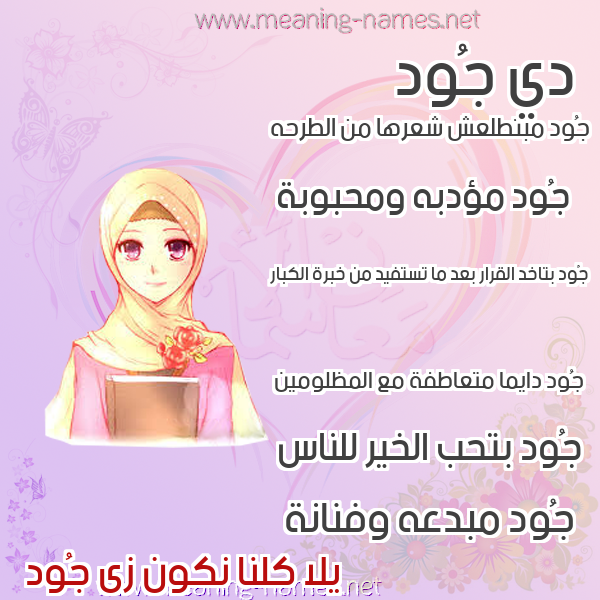 ما معنى اسمي جُود ؟ [E,] ? what the meaning of GOOD معاني كلمة جُود قاموس الأسماء و المعاني و الكلمات .