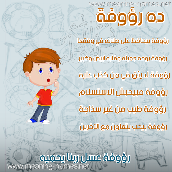 ما معنى اسمي رؤوفة ؟ vc,tm ? what the meaning of ROOFH معاني كلمة رؤوفة قاموس الأسماء و المعاني و الكلمات .