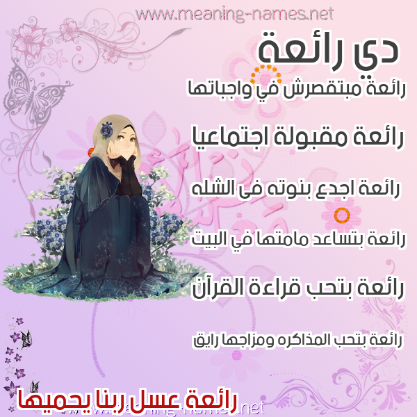 ما معنى اسمي رائعة ؟ vhzum ? what the meaning of Ra'i'h معاني كلمة رائعة قاموس الأسماء و المعاني و الكلمات .