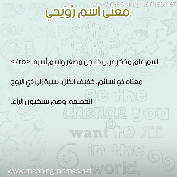 مشاهير يحملون اسم رُوَيحي و معنى اسم رُوَيحي في قاموس المعاني و الأسماء