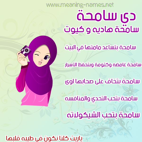 ما معنى اسمي سامحة ؟ shlpm ? what the meaning of SAMHH معاني كلمة سامحة قاموس الأسماء و المعاني و الكلمات .