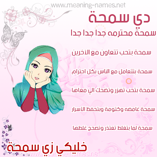 ما معنى اسمي سمحة ؟ slpm ? what the meaning of Smhh معاني كلمة سمحة قاموس الأسماء و المعاني و الكلمات .