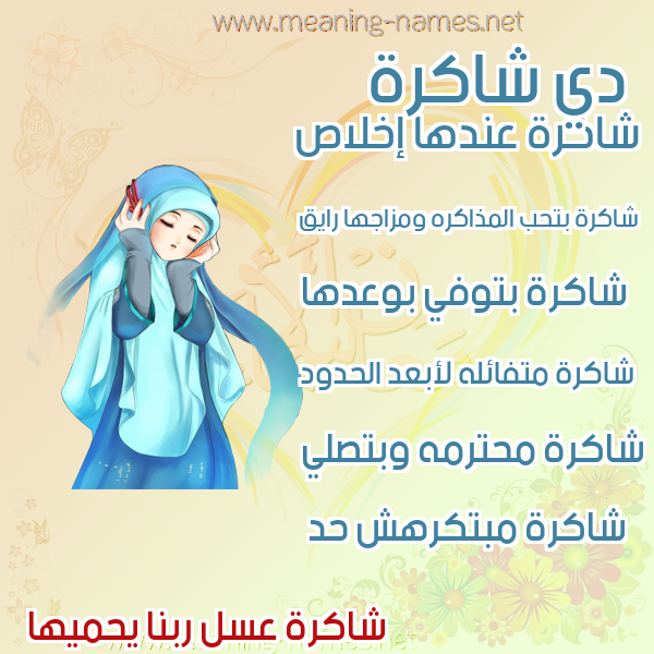 ما معنى اسمي شاكرة ؟ ah;vm ? what the meaning of Shakrh معاني كلمة شاكرة قاموس الأسماء و المعاني و الكلمات .
