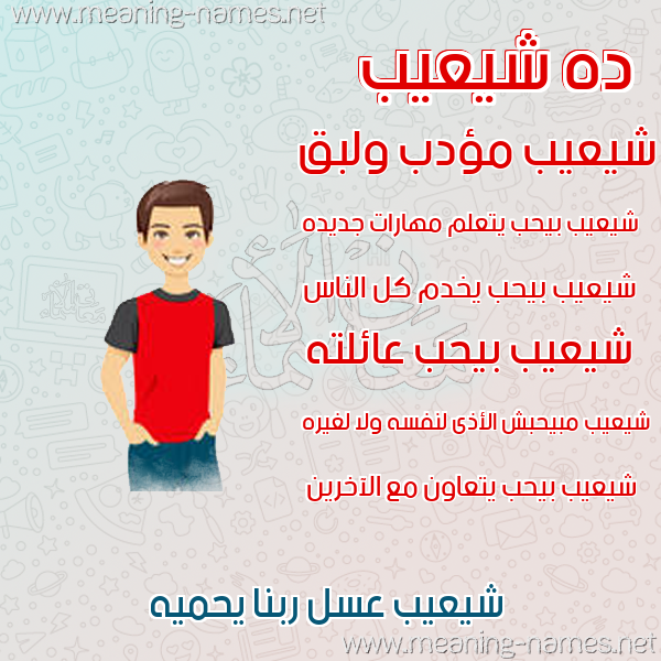 ما معنى اسمي شيعيب ؟ adudf ? what the meaning of Shoaib معاني كلمة شيعيب قاموس الأسماء و المعاني و الكلمات .