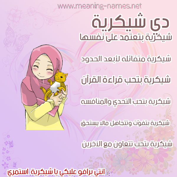 ما معنى اسمي شيكرية ؟ ad;vdm ? what the meaning of Shukria معاني كلمة شيكرية قاموس الأسماء و المعاني و الكلمات .
