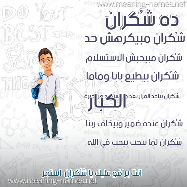ما معنى اسمي شُكران ؟ aE;vhk ? what the meaning of Shokran معاني كلمة شُكران قاموس الأسماء و المعاني و الكلمات .