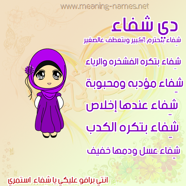 ما معنى اسمي شِفاء ؟ aAthx ? what the meaning of Shefaa معاني كلمة شِفاء قاموس الأسماء و المعاني و الكلمات .