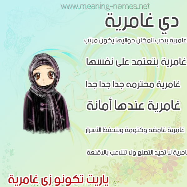 ما معنى اسمي غامرية ؟ yhlvdm ? what the meaning of Ghamryh معاني كلمة غامرية قاموس الأسماء و المعاني و الكلمات .