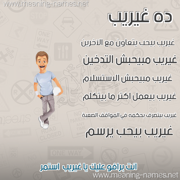 ما معنى اسمي غيريب ؟ ydvdf ? what the meaning of Ghareeb معاني كلمة غيريب قاموس الأسماء و المعاني و الكلمات .
