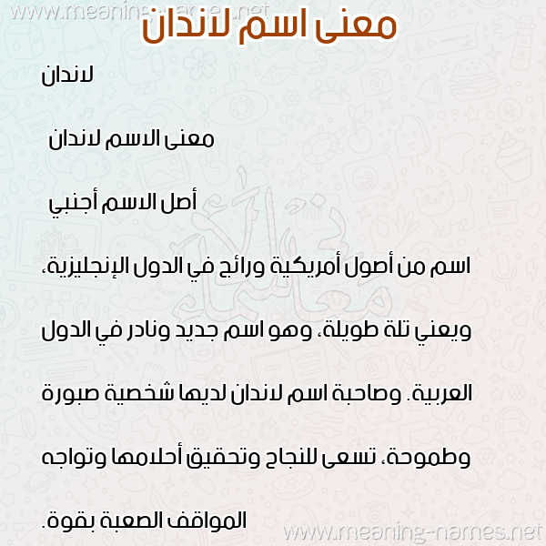 ما معنى اسمي لاندان ؟ ghk]hk ? what the meaning of landan معاني كلمة لاندان قاموس الأسماء و المعاني و الكلمات .