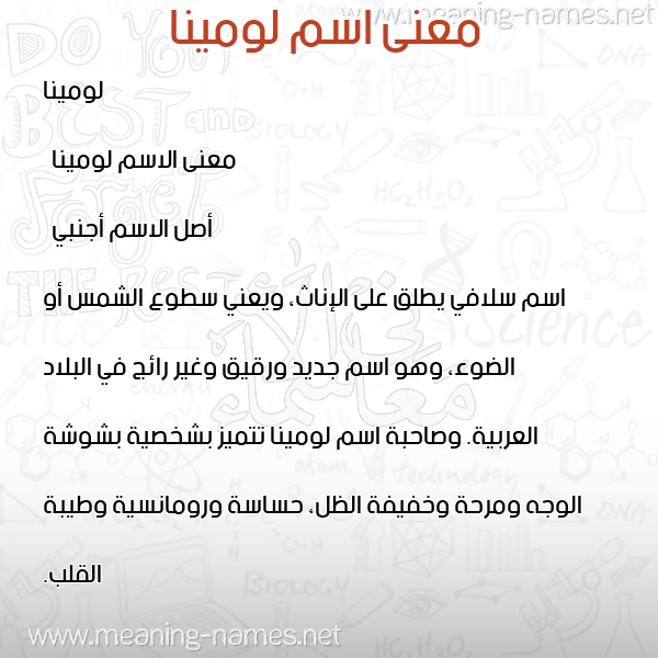 ما معنى اسمي لومينا ؟ g,ldkh ? what the meaning of lomina معاني كلمة لومينا قاموس الأسماء و المعاني و الكلمات .