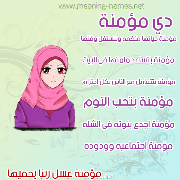 ما معنى اسمي مؤمنة ؟ lclkm ? what the meaning of Momena معاني كلمة مؤمنة قاموس الأسماء و المعاني و الكلمات .
