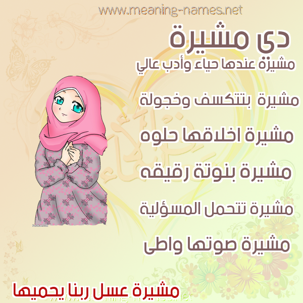 ما معنى اسمي مشيرة ؟ ladvm ? what the meaning of Moshira معاني كلمة مشيرة قاموس الأسماء و المعاني و الكلمات .