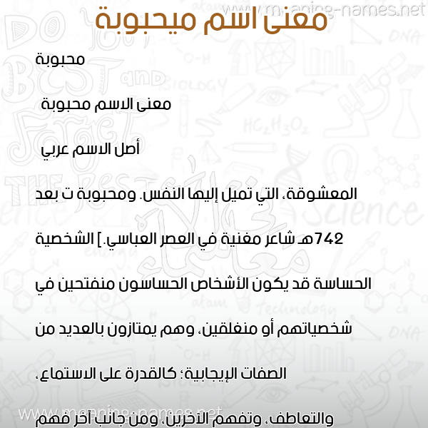 ما معنى اسمي ميحبوبة ؟ ldpf,fm ? what the meaning of Mahbouba معاني كلمة ميحبوبة قاموس الأسماء و المعاني و الكلمات .