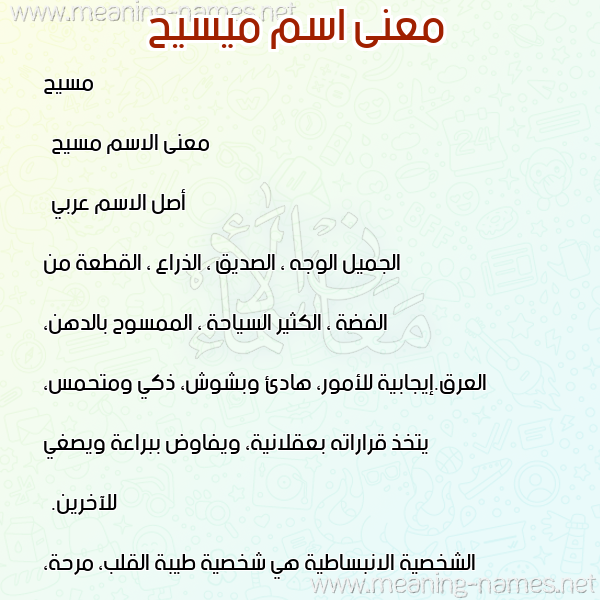 مشاهير يحملون اسم ميسيح و معنى اسم ميسيح في قاموس المعاني و الأسماء