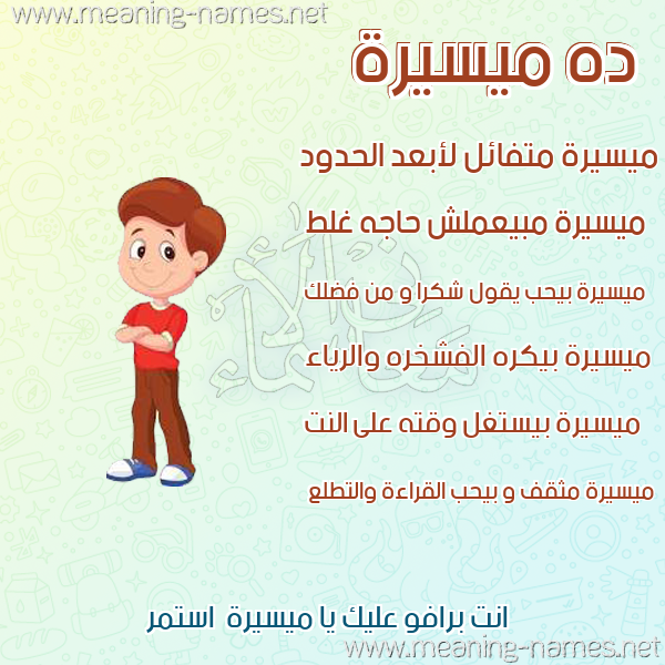 ما معنى اسمي ميسيرة ؟ ldsdvm ? what the meaning of Maisara معاني كلمة ميسيرة قاموس الأسماء و المعاني و الكلمات .