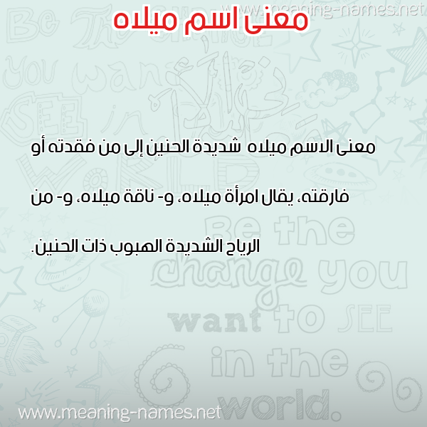 مشاهير يحملون اسم ميلاه و معنى اسم ميلاه في قاموس المعاني و الأسماء