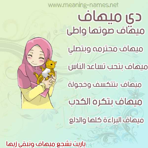 ما معنى اسمي ميهاف ؟ ldiht ? what the meaning of Mihaf معاني كلمة ميهاف قاموس الأسماء و المعاني و الكلمات .
