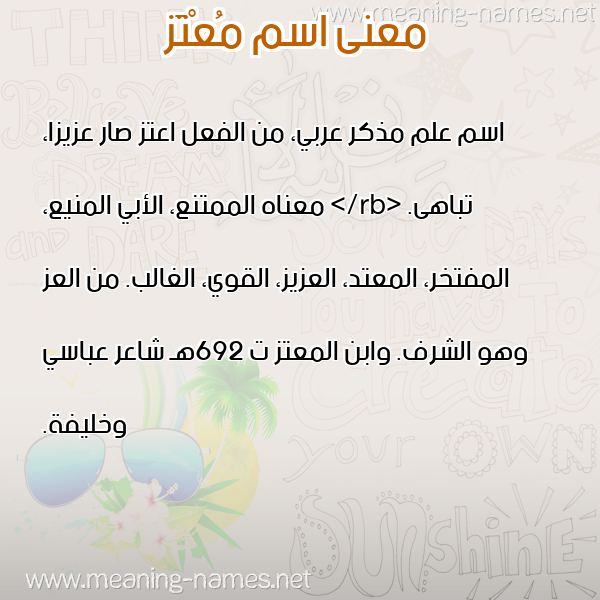 مشاهير يحملون اسم مُعْتَز و معنى اسم مُعْتَز في قاموس المعاني و الأسماء