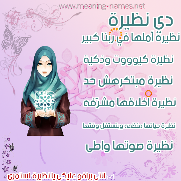 ما معنى اسمي نظيرة ؟ k/dvm ? what the meaning of Nzira معاني كلمة نظيرة قاموس الأسماء و المعاني و الكلمات .