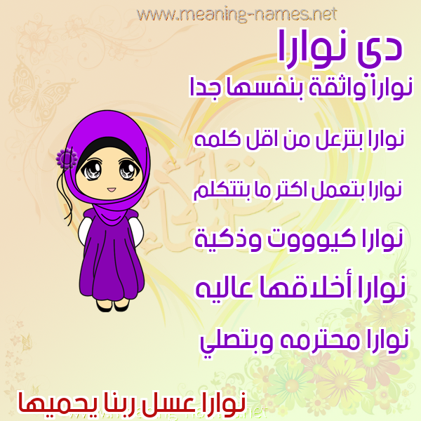 ما معنى اسمي نوارا ؟ k,hvh ? what the meaning of Noara معاني كلمة نوارا قاموس الأسماء و المعاني و الكلمات .
