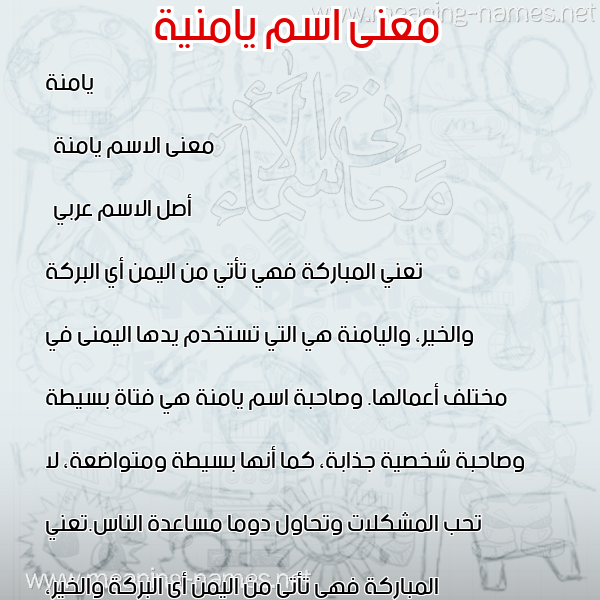 ما معنى اسمي يامنية ؟ dhlkdm ? what the meaning of Yamna معاني كلمة يامنية قاموس الأسماء و المعاني و الكلمات .