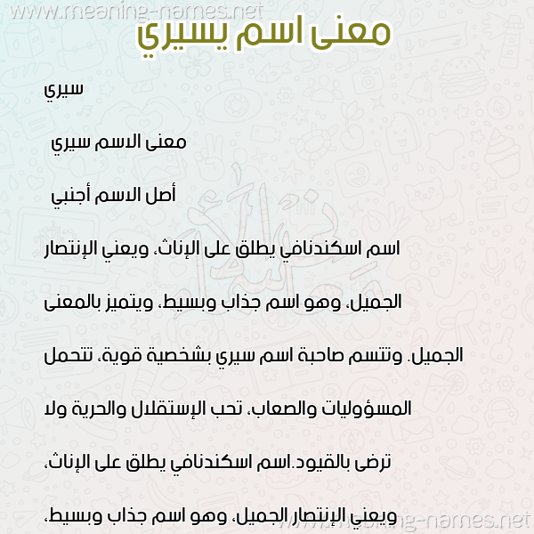 معنى اسم يسيري ----Siriفي قاموس المعاني و الأسماء