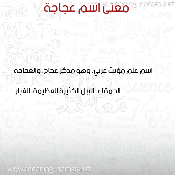 معنى اسم عَجَاجة AAGAAGHفي قاموس المعاني و الأسماء