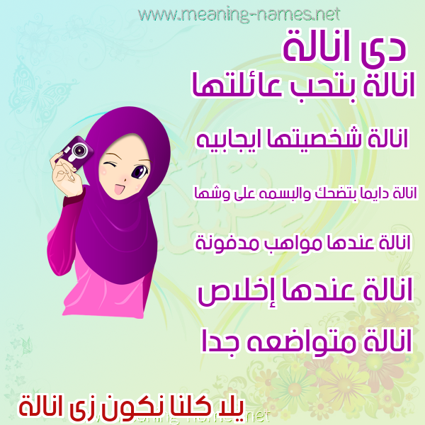ما معنى اسمي انالة ؟ hkhgm ? what the meaning of ANALH معاني كلمة انالة قاموس الأسماء و المعاني و الكلمات .