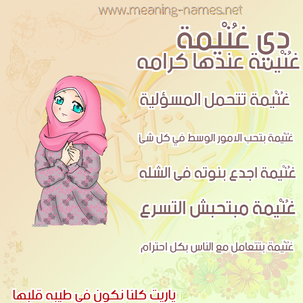 معنى اسم غُنْيمة GHONIMHفي قاموس المعاني و الأسماء