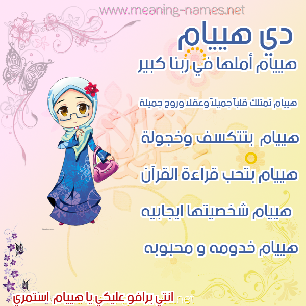 ما معنى اسمي هييام ؟ iddhl ? what the meaning of Hiam معاني كلمة هييام قاموس الأسماء و المعاني و الكلمات .