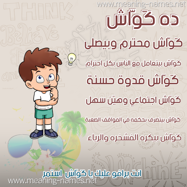 معنى اسم كَوّاش KAOASHفي قاموس المعاني و الأسماء