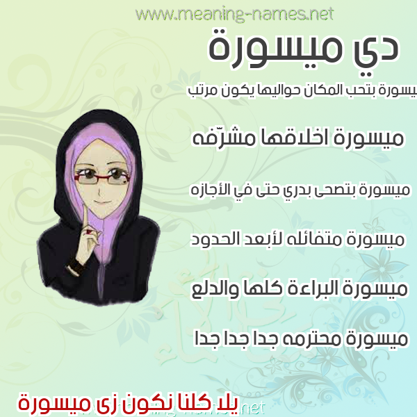 معنى اسم ميسورة Myswrhفي قاموس المعاني و الأسماء