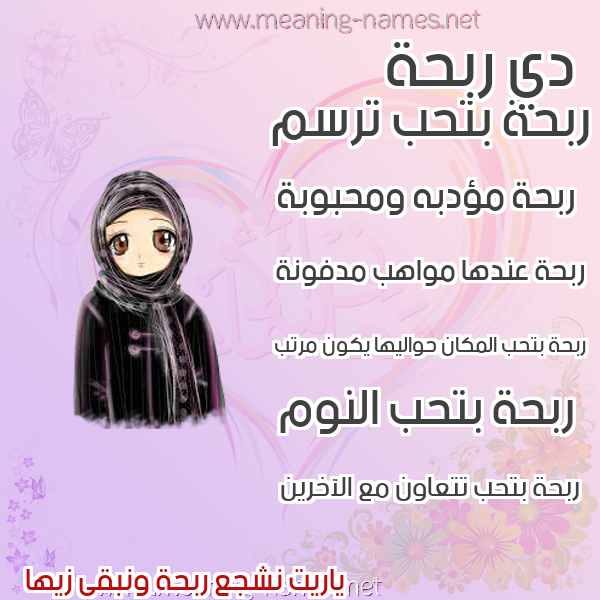 معنى اسم ربحة Rbhhفي قاموس المعاني و الأسماء