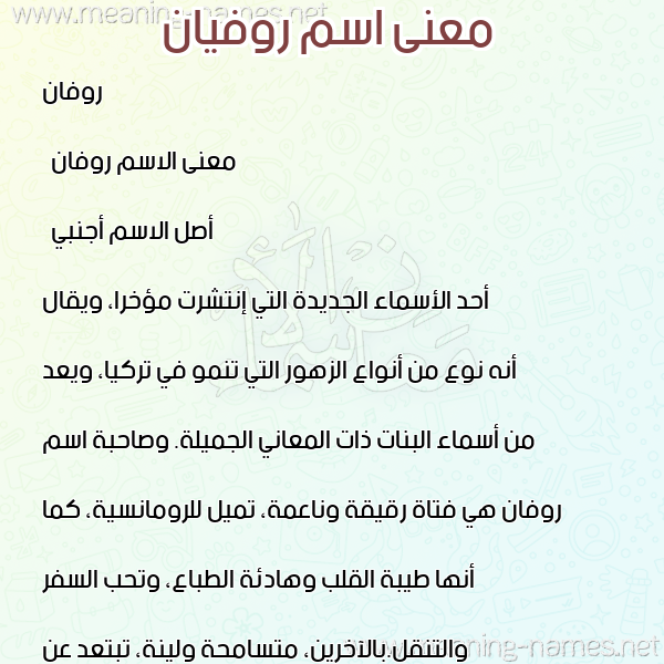 ما معنى اسمي روفيان ؟ v,tdhk ? what the meaning of Rofan معاني كلمة روفيان قاموس الأسماء و المعاني و الكلمات .