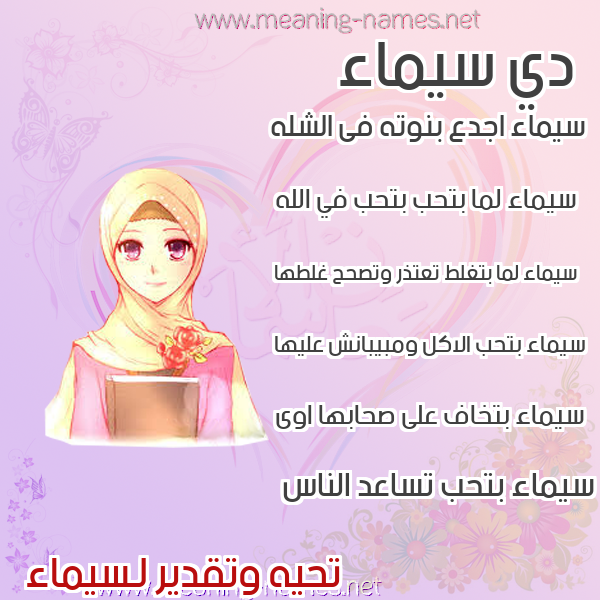 معنى اسم سيماء Syma\'aفي قاموس المعاني و الأسماء