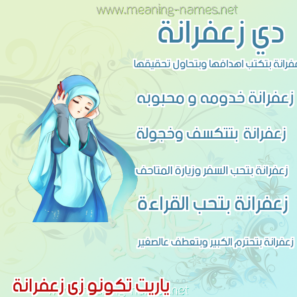 معنى اسم زعفرانة Z\'franhفي قاموس المعاني و الأسماء