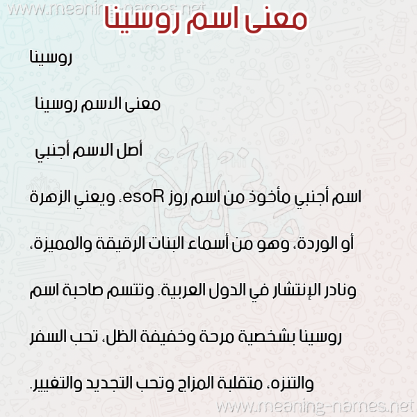 ما معنى اسمي روسينا ؟ v,sdkh ? what the meaning of rosina معاني كلمة روسينا قاموس الأسماء و المعاني و الكلمات .