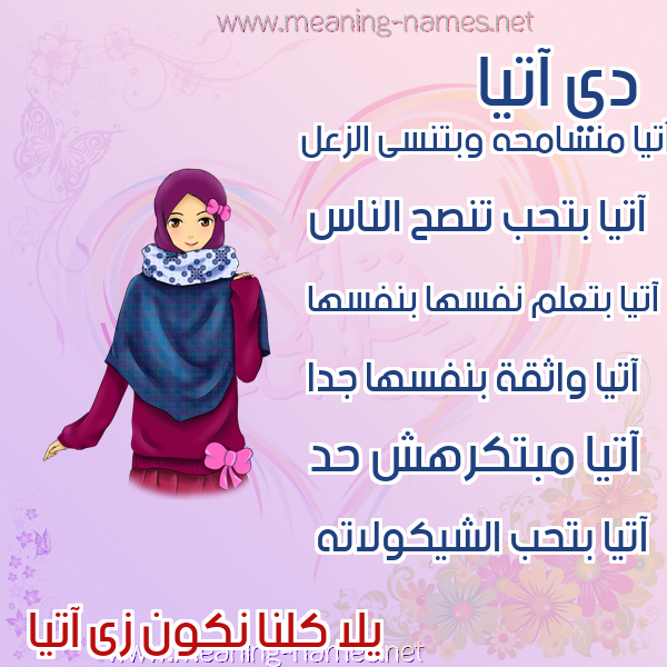 ما معنى اسمي آتيا ؟ Njdh ? what the meaning of atiaa معاني كلمة آتيا قاموس الأسماء و المعاني و الكلمات .