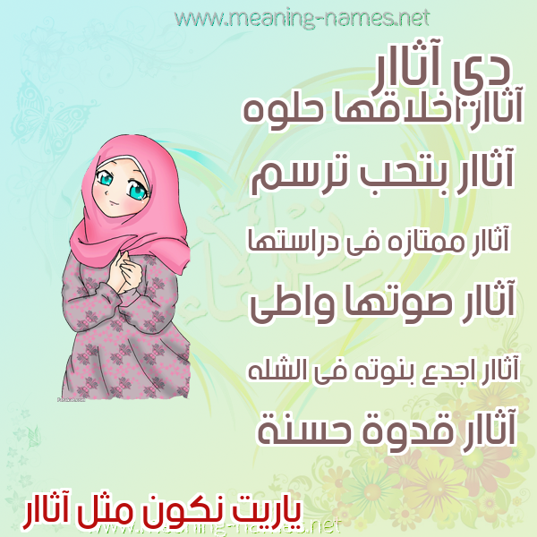 ما معنى اسمي آثاار ؟ Nehhv ? what the meaning of Athar معاني كلمة آثاار قاموس الأسماء و المعاني و الكلمات .