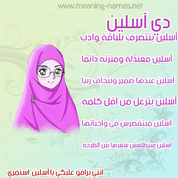 ما معنى اسمي آسلين ؟ Nsgdk ? what the meaning of aslin معاني كلمة آسلين قاموس الأسماء و المعاني و الكلمات .