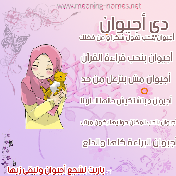 ما معنى اسمي أجيوان ؟ H[d,hk ? what the meaning of Ajwan معاني كلمة أجيوان قاموس الأسماء و المعاني و الكلمات .