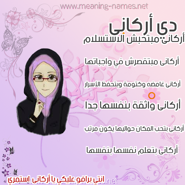ما معنى اسمي أركانى ؟ Hv;hkn ? what the meaning of Arkan معاني كلمة أركانى قاموس الأسماء و المعاني و الكلمات .